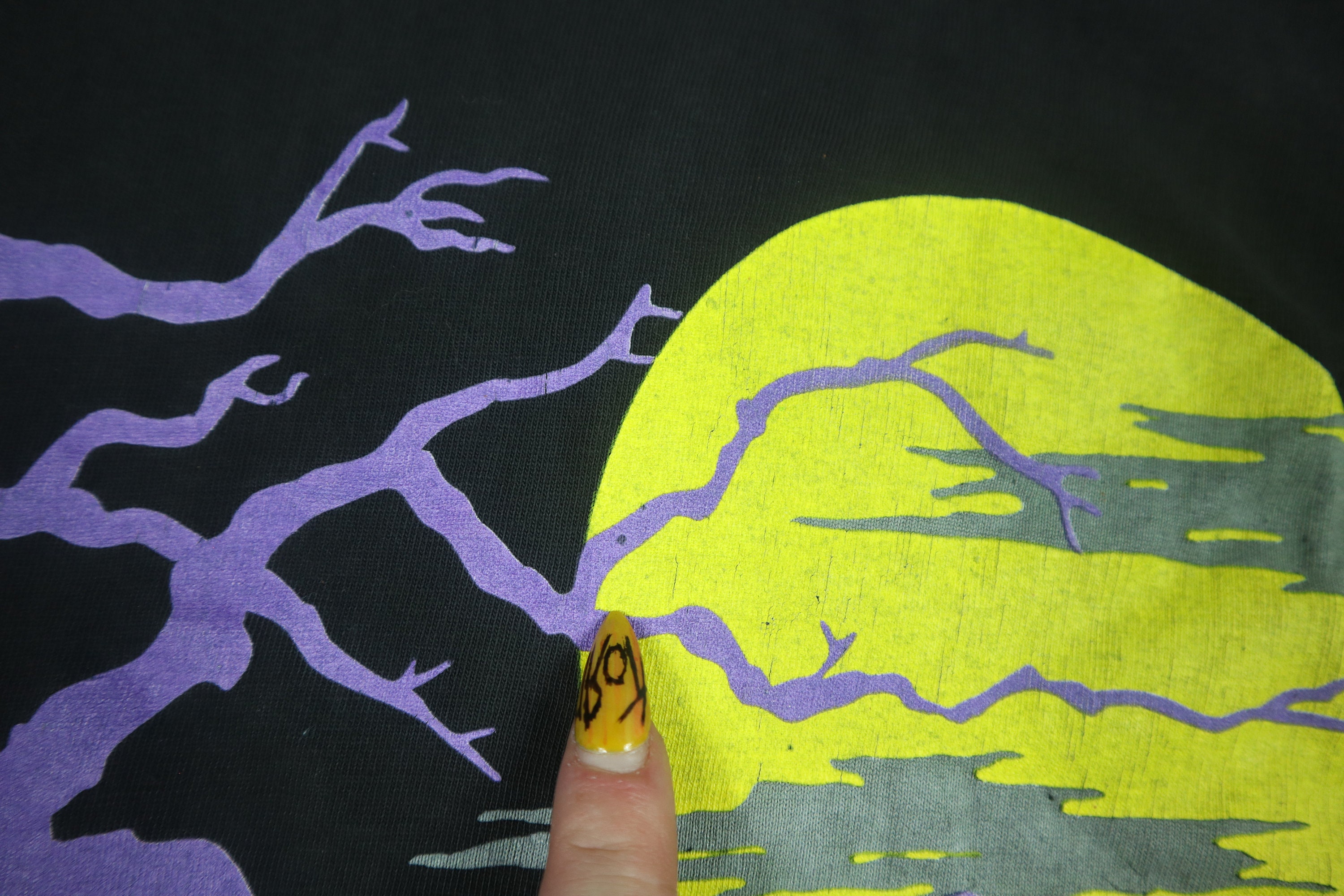 Spooky Tree & Pumpkins 1990s vintage Halloween Tshirt. No size tag, please see measurements.