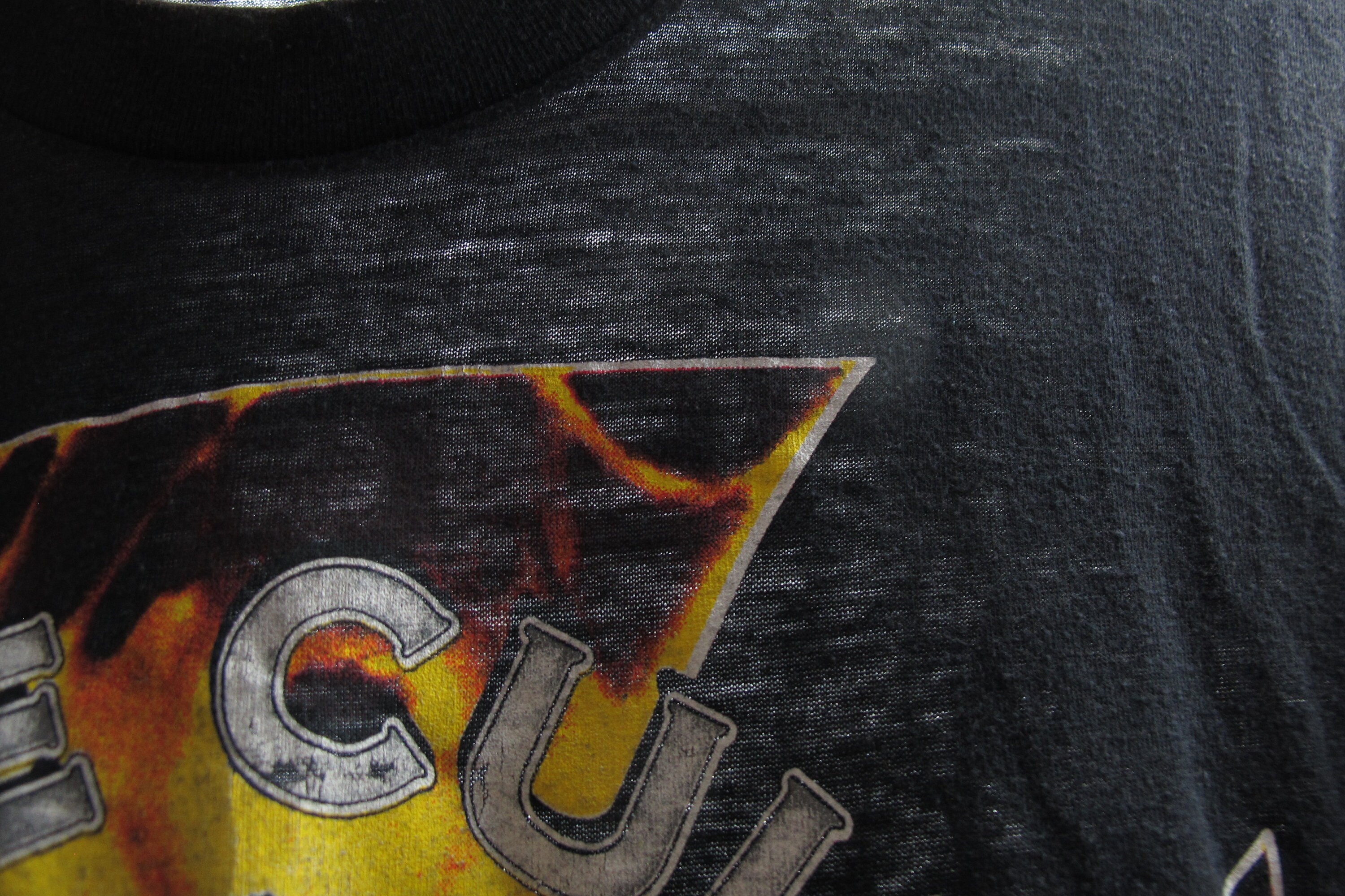 We do our best to describe all items. All shirts are sold in As-Is condition. Please keep in mind that this is a used vintage shirt so there will be age appropriate wear. Feel free to contact us if you have any questions!